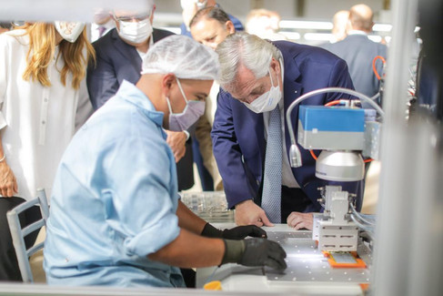 A continuación, el jefe de Estado se trasladó hacia la fábrica de Novatech, donde visitó junto al CEO, Pablo Rubio, y otros directivos de la firma las dos líneas de producción que tiene la empresa. Además, pudo interiorizarse sobre el reciente anuncio de inversión de la compañía por 470 millones de pesos para potenciar su crecimiento en el país, donde ya cuenta con dos plantas en Río Grande, una en Catamarca, y otra en el Distrito Tecnológico de la Ciudad de Buenos Aires.